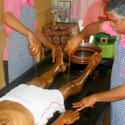 A veriety of massage luke - warm medicated oil poured from a certian height over the whole body followed by gentle massage.